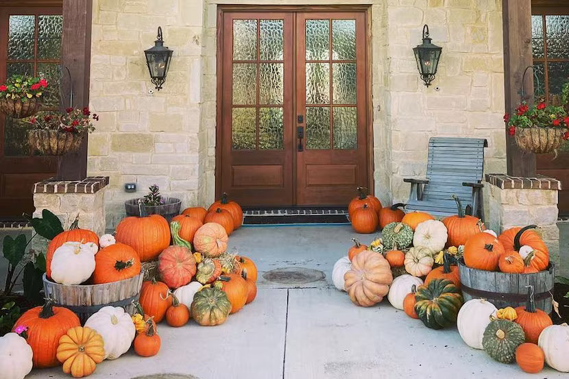 Tired of a plain porch or entryway? Let us transform your entryway with stunning fall decor! From pumpkins, mums, seasonal plants, hay bales, corn stock and more. We can handle it all so you can enjoy the season stress-free.